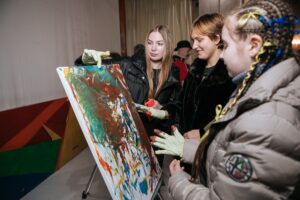 Разом з дітьми команда Дизель студіо створила колективні картини руками.
