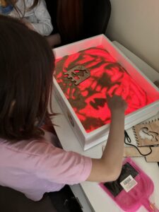 Ігри з піском та світлом зачаровують, а ще допомагають дитині відволіктися від стресу, розвантажити нервову систему і покращити психоемоційний стан. Така сенсорна арттерапія дозволяє дитині розслабитися і відкритися.